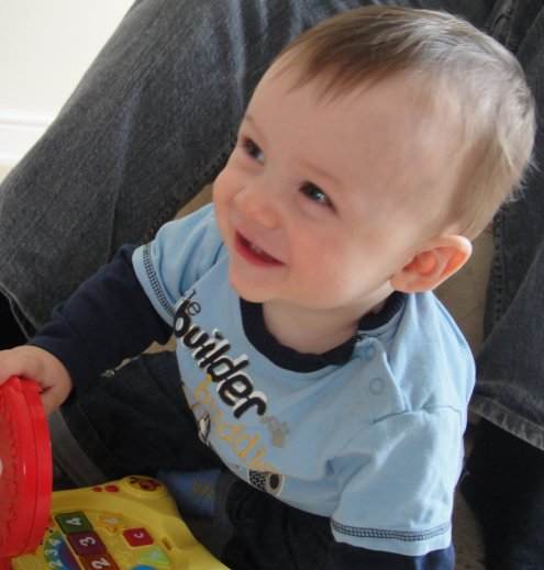 Wow, your baby turned into a small boy! I never cease to be astonished how they do that. Thanks for the picture, he's lovely.