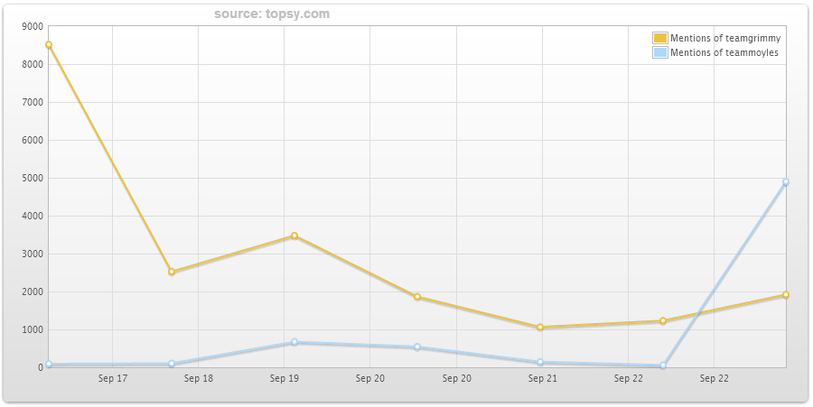 So, as we reach the end of our morning fun, it's fantastic that we set out to do what we intended - #TeamMoyles was trending on Twitter in the UK and, most satisfyingly, above Grimmy.